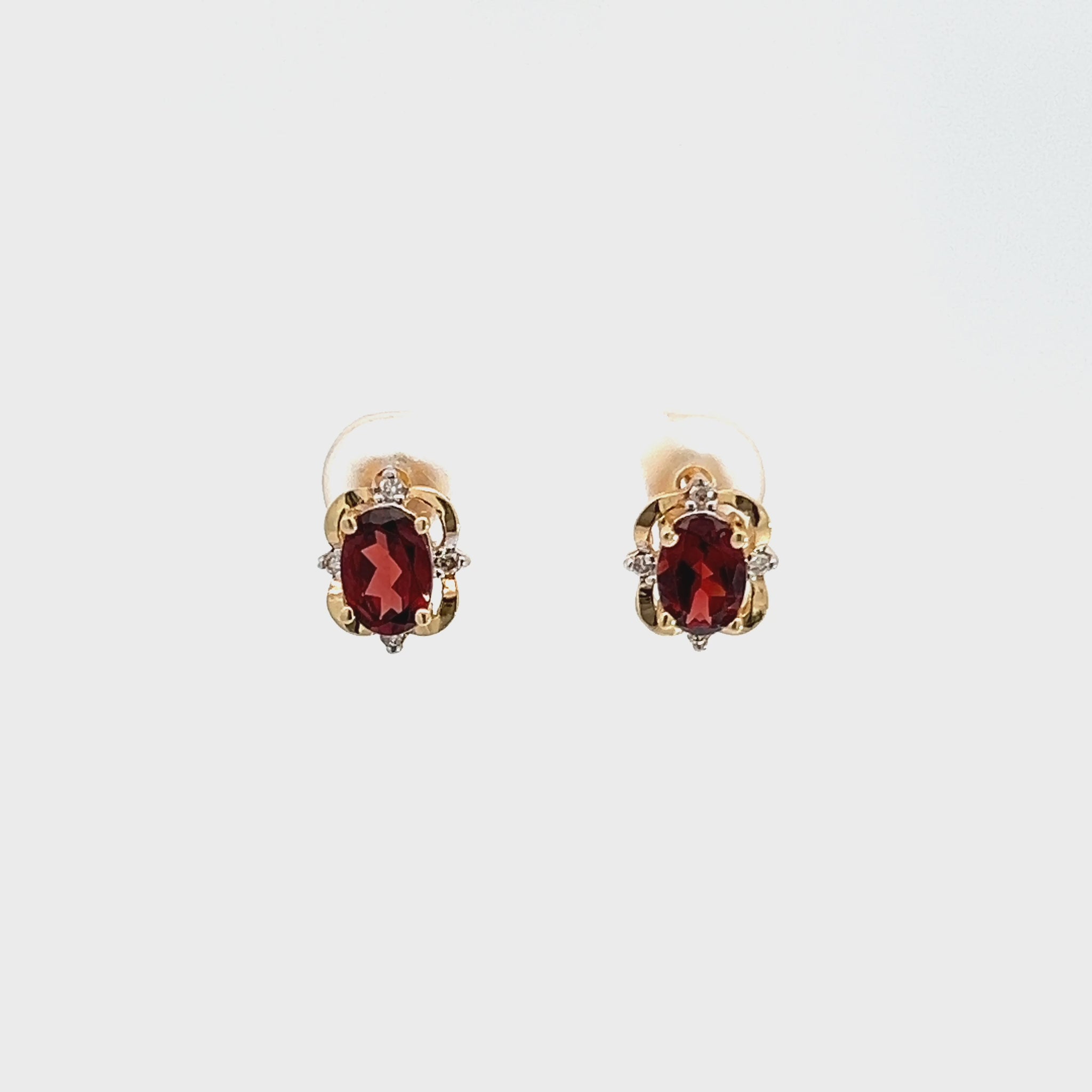 14K Yellow Gold Garnet & Diamond Stud Earrings
